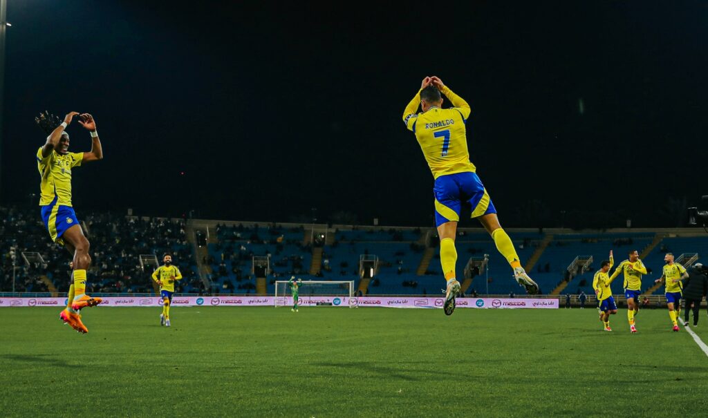 وجاء الهدف الأول للنصر في الدقيقة 35 عن كريستيانو رونالدو، بعد تمريرة من لاعب الوسط بروزوفيتش.