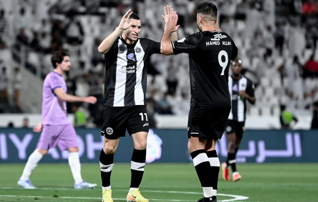 وفي الدقيقة الرابعة من الوقت الضائع بالشوط الأول احتسب حكم اللقاء ركلة جزاء للشباب، سددها حمدالله ليضيف الهدف الثاني.
