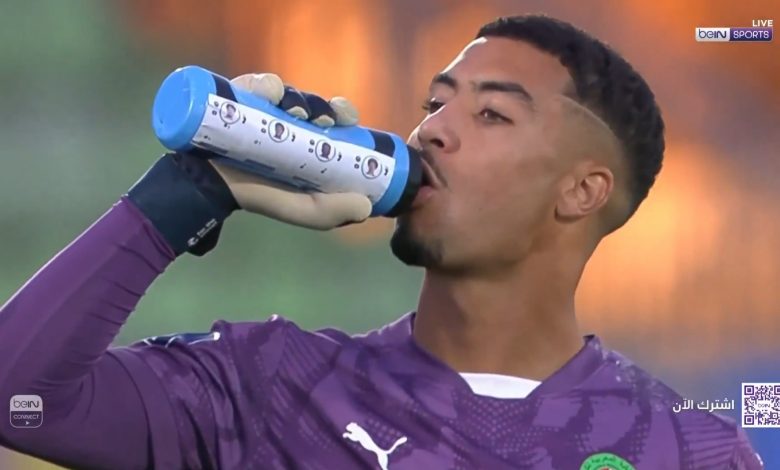 حارس المغرب يحمل زجاجة لتساعدة في ركلات الترجيح امام فرنسا في نصف نهائي كأس العالم للشباب