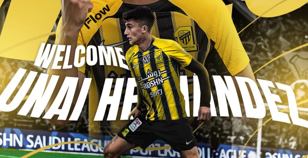ونشر حساب نادي الاتحاد عبر منصة إكس التعاقد مع هيرنانديز وعلق: “من برشلونة إلى جدة، أوناي هيرنانديز ينضم إلى كتيبة النمور”.
