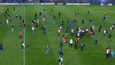 لحظه اقتحام الجماهير لملعب مباراة اولمبيك اسفي واتحاد العاصمة وانسحاب اللاعبين والحكام