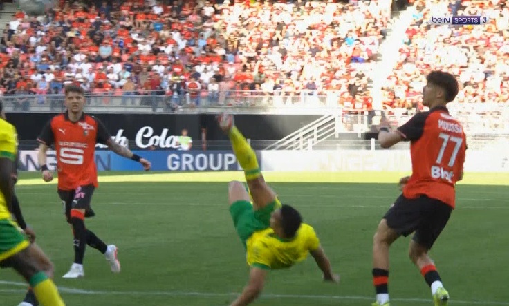 مصطفي محمد كاد ان يسجل هدف رائع من مقصيه امام رين بالدوري الفرنسي