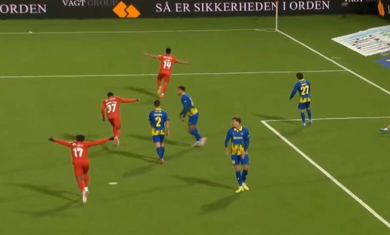 هدف ابراهيم عادل الرائع في مرمي بروندبي بالدوري الدنماركي