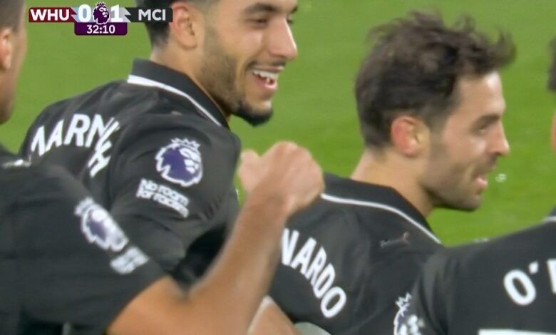 هدف مانشستر سيتي الاول الرائع في مرمي وست هام اسيست عمر مرموش
